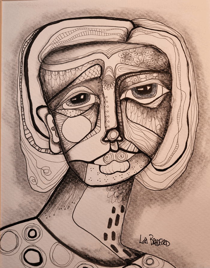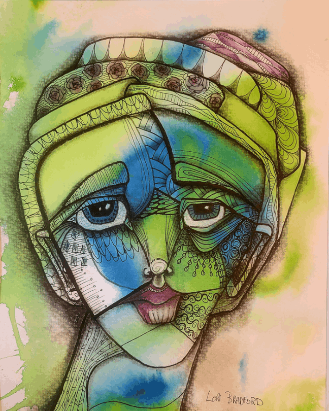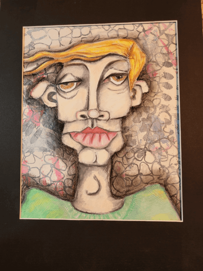 This creation whispers of a world where sadness is not just felt but accepted as part of life. This 9 x 12 piece transcends conventional boundaries, melding abstraction with elements of surrealism and cubism. The visage is not merely a face but a labyrinth of emotions, etched in geometric fragments.