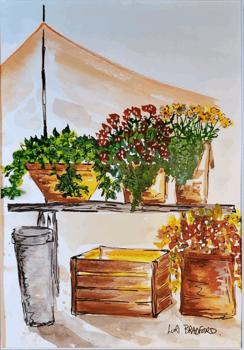 Imagine yourself strolling down this cozy lane while exploring a sun-soaked Mediterranean village. It’s a little slice of vacation you can enjoy every day, right from the comfort of your home. Dive into the serene charm and let the wanderlust wash over you! Thanks to Toni Burt for inspiring this painting.